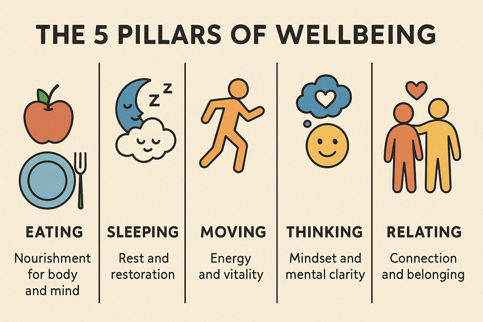 We believe that a person’s wellbeing is more than the sum of their physical needs — it is about living meaningfully, comfortably, and with dignity, even in the context of frailty or cognitive decline. This is why we are evolving our approach towards a Wellbeing Model of Care, built around the Five Pillars of Wellbeing: Eating, Sleeping, Moving, Thinking, and Relating.